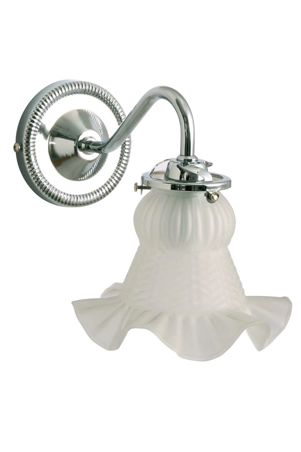 Un style classique anglais très réussi pour cette applique en métal chromé et verre fleur satiné blanc. Le support mural rond est cannelé sur son contour et renflé au centre. Le bras est recourbé et supporte une délicate fleur en verre. Cette applique est IP44 pour assurer son installation en milieu humide en toute sécurité. La marque Concept verre sait capter les tendances du moment et nous propose une ligne de luminaires contemporains et stylés.