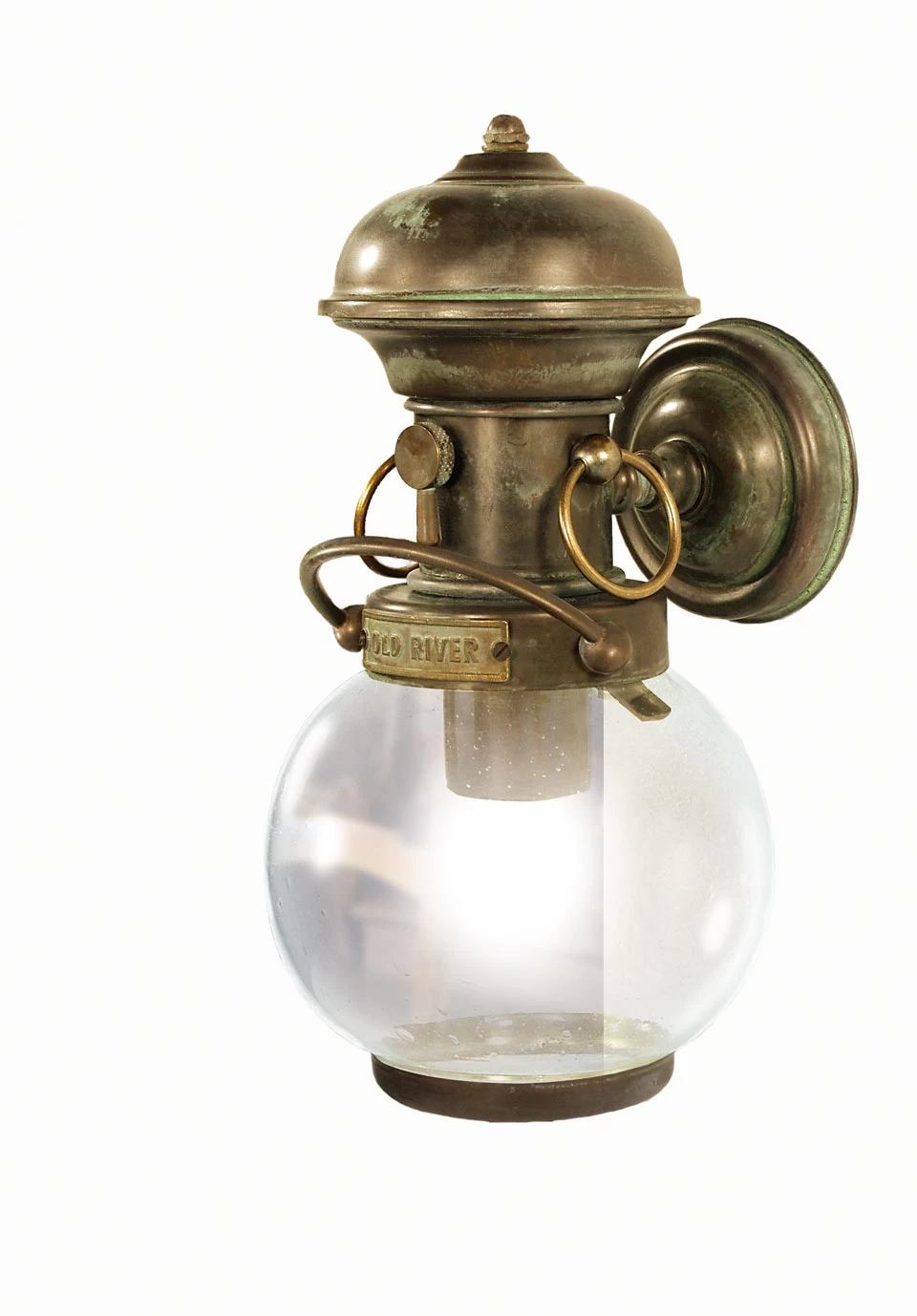 Cette applique Botticella issue de la gamme Marine est inspirée des lampes à pétrole du 19ème siècle. Elle se compose d’une bulle de verre transparent qui protège l’ampoule, dont la partie inférieur est découpée d’un anneau de métal, évoquant un esprit industriel, le tout fixé sur un support mural cylindrique. L’applique est entièrement réalisée en laiton avec une finition vieillie, avec ses touches de vert-de-gris. La maison italienne Moretti utilise un laiton massif d’excellente qualité qui permet la réalisation de luminaires solides.