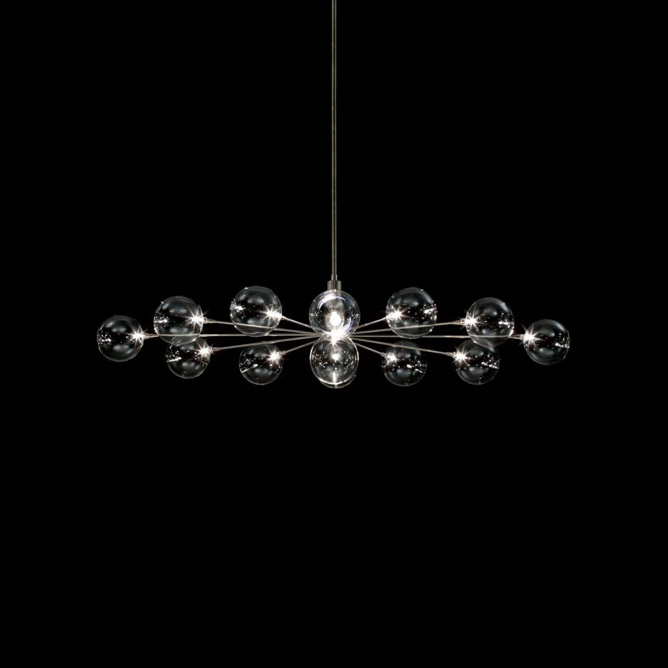 Les bulles aériennes de la série Cluster qui composent ce lustre 13 lumières amènent un design contemporain et une touche de transparence à votre intérieur. Cluster ovale porte bien son noble nom, organisée en géométrie circulaire, elle est composée de 13 sphères de verre transparent disposées sur une structure horizontale en étoile, fabriquée en inox lui conférant une grande résistance. La structure assure un éclairage ample et en fait un modèle idéal pour de grandes pièces de vie ou des pièces circulaires. Suspendue sur une tige métallique, le luminaire produit de jolies ombres rondes. Les luminaires de la marque néerlandaise Harco Loor, active depuis les années 1980, sont fabriqués au sein de leurs ateliers d’Haarlem, chaque modèle est fabriqué à la main à partir de matériaux de grande qualité.