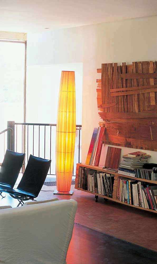 La grande Colonne 190cm est en tissu plissé orange et est posée sur un socle carré en acier gris. Son câble d’alimentation est transparent et 4 ampoules sont nécessaire pour l’illuminer. En option, elle peut être équipée d’un variateur de lumière (nous consulter). Colonne existe en suspensions de 4 tailles différentes, en lampadaire et en lampe à poser