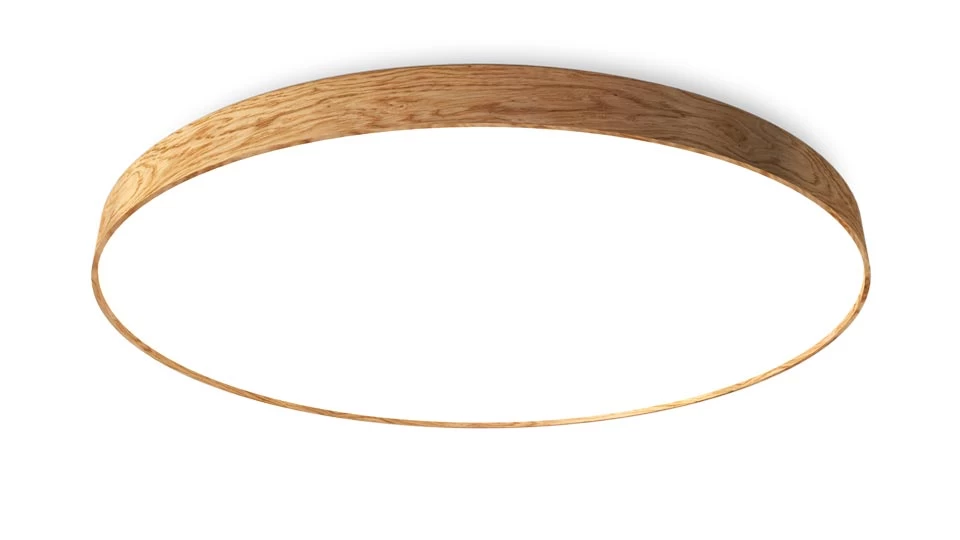 Plafonnier de la collection minimaliste WoodLED avec un cadre très fin et un diffuseur légèrement encaissé. C’est une large pièce de chêne circulaire dans laquelle est encastré un diffuseur blanc, avec une fine bordure de bois. Modèle organique qui diffuse une lumière blanche de haute qualité ( CRI>90). L’éclairage est puissant, le driver est intégré et compatible avec une installation DALI.