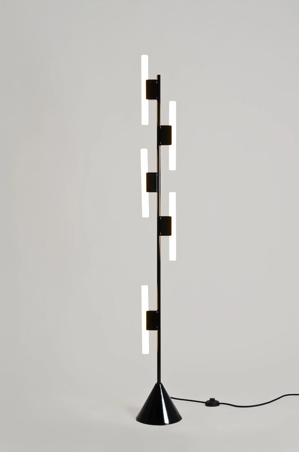 S’élançant de sa base conique, le lampadaire Design 5 tubes arbore ses tubes de LED, parallèlement et sur toute la longueur de son pied. Chacune des 5 lumières est fixées par une patte métallique rectangulaire noire laquée, contraste avec la finesse et la verticalité des tubes de verre pour les mettre en valeur. L’éclairage rendu est doux, efficace et naturel. Ce luminaire au design recherché et à l’exceptionnelle qualité des matériaux qui la composent est le fruit d’une collaboration étroite entre le Designer et atelier de manufacture familial qui le produit. Telle est la philosophie de la Maison Areti qui signifie en Grec Virtuosité et Excellence. Ce lampadaire est également disponible en blanc. Nous contacter pour toute autre couleur.