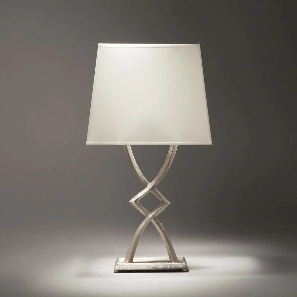 La finition nickel satiné donne à la lampe de table Mona une élégance discrète. Cette lampe de table déco au pied stylisé surmonté d’un abat-jour blanc, présentée ici dans son petit modèle, peut par ses dimension être posé sur un chevet, sur un meuble étroit ou d’angle. La sobriété de son socle rectangulaire biseauté, de son corps stylisé et de son abat-jour blanc souligne l’élégance de son dessin et la noblesse de ses matériaux. Fruit du travail et du savoir-faire du bronzier Augustin Granet qui utilise des techniques de moulages issues de l’industrie apportant irrégularités et force à la matière, cette lampe appartient à une collection de luminaires raffinés, destinés aux plus belles demeures. Cette lampe est entièrement réalisée dans les ateliers du bronzier, en France. Munie d’une ampoule de 100W, elle offrira une éclairage puissant. Par défaut, ce luminaire est livré avec l’abat-jour proposé sur cette image mais le tissu peut être choisi dans le nuancier visible en photo complémentaire sur cette page, choix à préciser dans les informations spéciales de votre formulaire de commande. Cette lampe existe en dorée sous la référence 17090383 et en patine noire sous la référence 17090381.