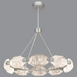 Lustre 9 Lumières En Verre Opale Blanc Et Paillettes Dorées Signature