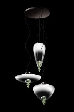 Padma Suspension Contemporaine 3 Lumières En Cristal Vénitien Blanc Et Vert Citron