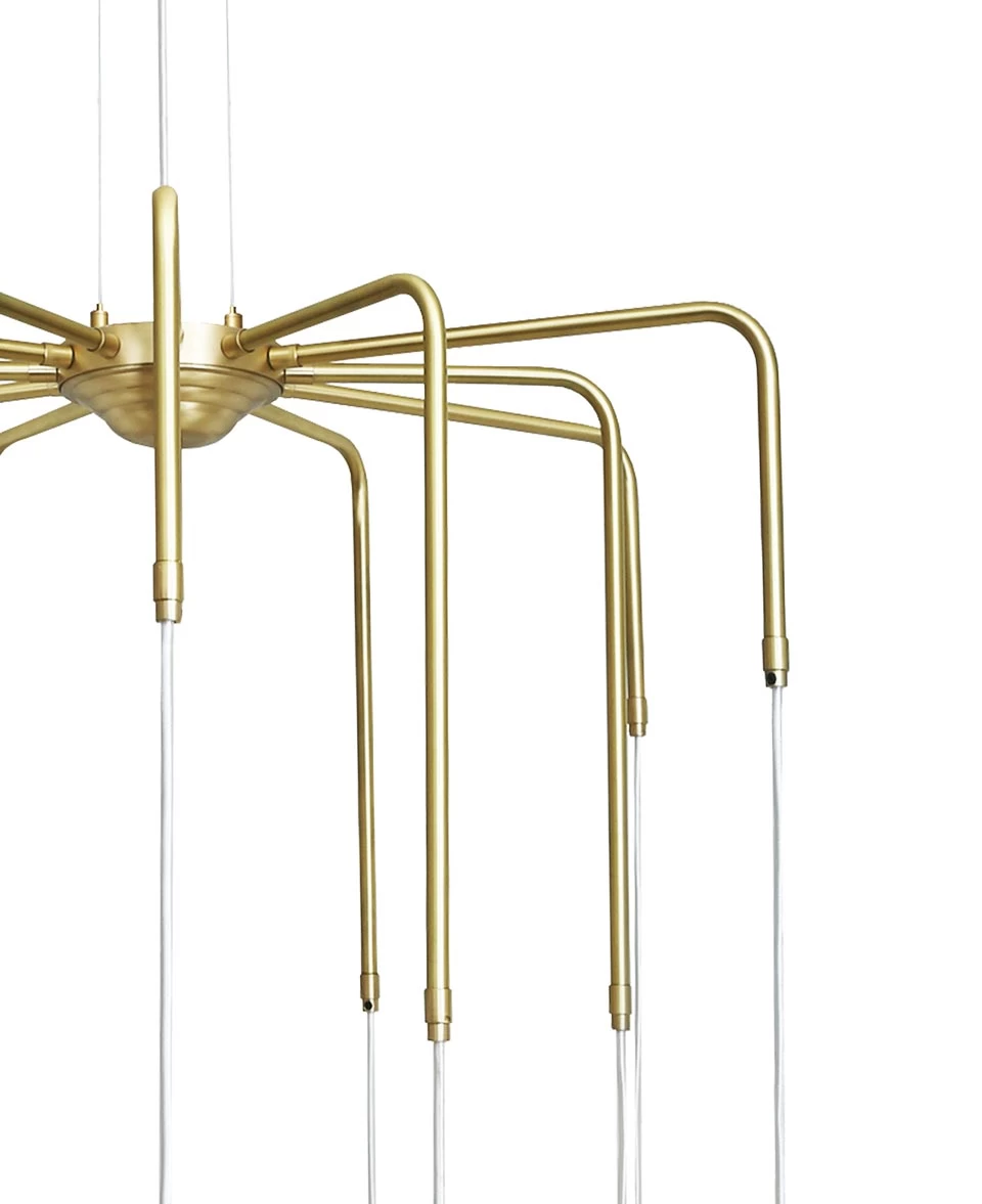 Unique, ce lustre comprend treize lumières suspendues à des bras en laiton satiné puis par des câbles d’alimentation recouverts de tissu blanc est un réel chef d’œuvre. Les câbles apparents avant l’ampoule, non recouverts de laiton, permettent à l’ampoule de bouger lors de courant d’air ce qui donne un ballet de lumière. Sela est à la fois tout en finesse et très moderne. Ces longs bras nécessitent une installation sous une hauteur de plafond de 280cm minimum. Les câbles de suspension de suspension et d’alimentation sont attachés à un support de plafond cylindrique d’un petit diamètre. Son créateur Mike Treanor crée de nouveaux éclairages, qui seront les pièces maitresses de votre décoration. Dans le même style vous trouverez le lustre Madaba sous la référence 16030207.