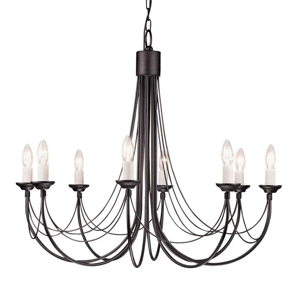 Superbe lustre 8 lumières de la collection gothique Carisbrooke, avec un réseau de fil de fer, une structure en métal noir et de petits fourreaux ivoire. Le modèle est composé de bras amples fixés sur un cylindre central relié à la chaine de suspension, chaque bras est doté d’un bassin sobre surmonté d’un fourreau couleur ivoire. Remarquez les fils de fer qui relient les bras entre eux et qui tissent un élégant réseau donnant une certaine légèreté au modèle. L’impeccable fabrication est celle de la maison britannique Elstead lighting, connue depuis le XVIIème siècle comme les forges Elstead, aujourd’hui alliant la perpétuation des techniques artisanales à une véritable modernité dans le design et la réalisation. Ce modèle est fabriqué au Royaume-Uni.