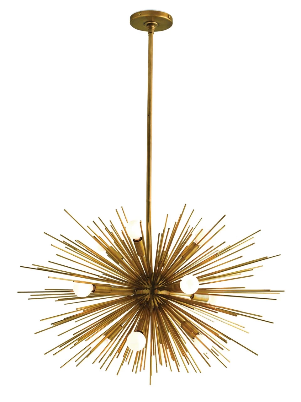 Le lustre petit modèle Zanadoo en laiton antique est la représentation d’un soleil éclatant dans la maison. Agrémenté de 12 lumières, il offre un éclairage puissant et nous conseillons l’usage d’un variateur de lumière. La tige de suspension, également en laiton antique, réglable en hauteur est composée de 2 éléments de 30cm et 1 élément de 15cm et le cône de plafond est cylindrique. Des éléments supplémentaires peuvent être commandés en option, nous consulter. Ce modèle possède une protection Classe I, il doit être liée à une connexion terre et peut être installé dans une pièce humide ou une salle de bains à plus de 60cm d’un point d’eau. Arteriors nous montre une nouvelle fois ici, sa capacité à capter les tendances du moment et nous proposer les modèles dont nous avons envie. Cette collection comprend également un lustre grand modèle visible sous la référence 16110333 et un grand plafonnier sous la référence 16110332