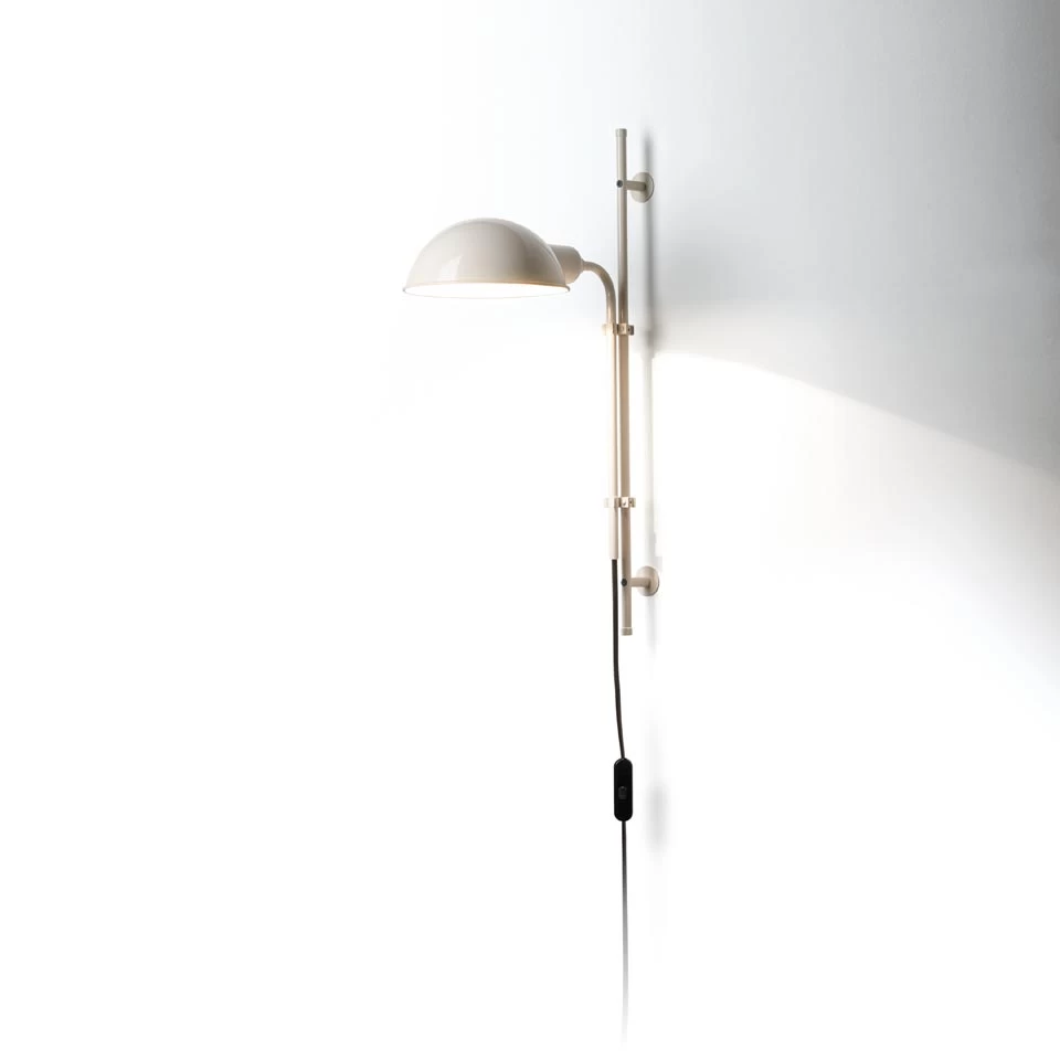 Design industriel pour cette applique iconique blanc cassé en métal peint au réflecteur orientable à 360° et au bras pivotant et réglable en hauteur. Version murale de la réédition de l’emblématique modèle lampadaire Funiculí, designé par Lluis Porqueras dans les annnées 70, l’alimentation de cette applique se fait par une prise murale. Présentée ici en métal blanc cassé, Funiculí est disponible en noir visible sous la référence 17020332, en gris moussue visible sous la référence 17020334 et en rouge visible sous la référence 17020334. La collection Funiculi comprend également les lampes de bureau références 17020323 et 17020324 et les lampadaires liseuses références 17020314, 17020315 et 17020316.