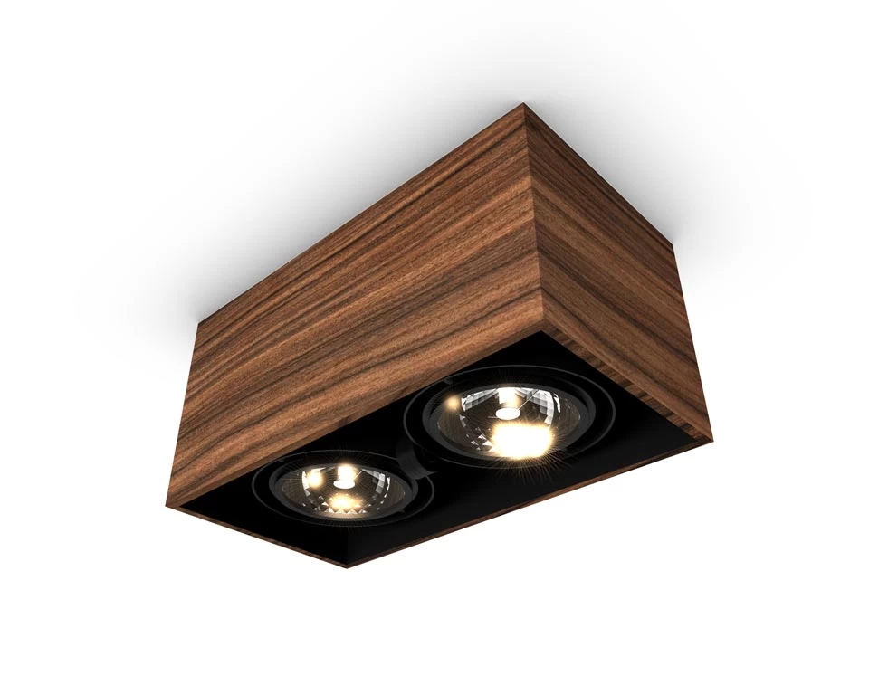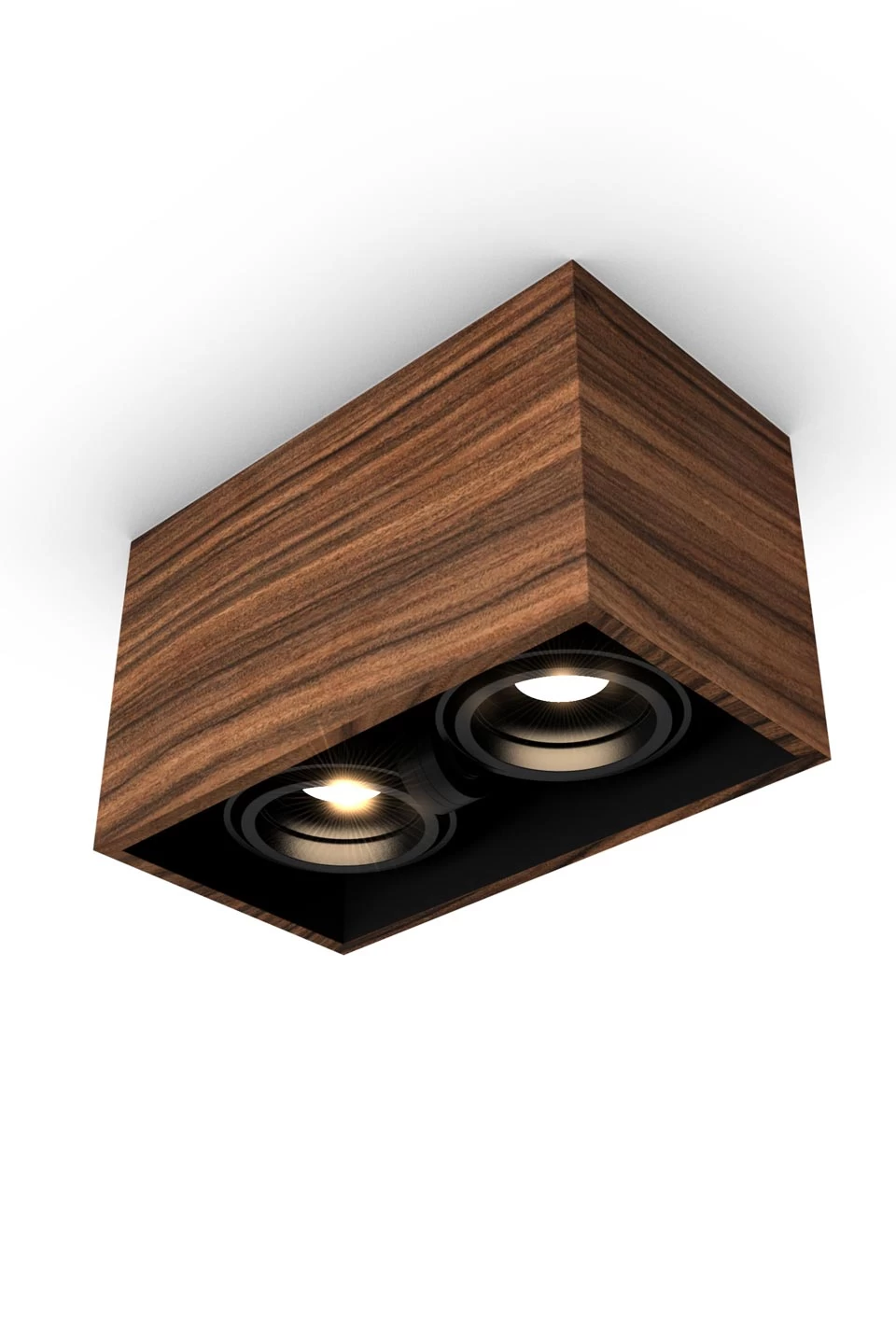 Très joli spot de plafond de la collection WoodLED. Ce modèle est le mini spot 2 lumières, c’est un volume rectangulaire en bois de bois de rose dans lequel est encastré le module LED blanc de haute qualité ( CRI>90). L’intérieur du coffrage est noir, ce qui fait ressortir la lumière, et c’est un modèle idéal a placer en série dans un couloir ou un escalier par exemple, grâce à son faible volume. Le driver est intégré et non compatible avec un variateur de lumière. Un driver compatible DALI peut être commander en option, nous consulter.