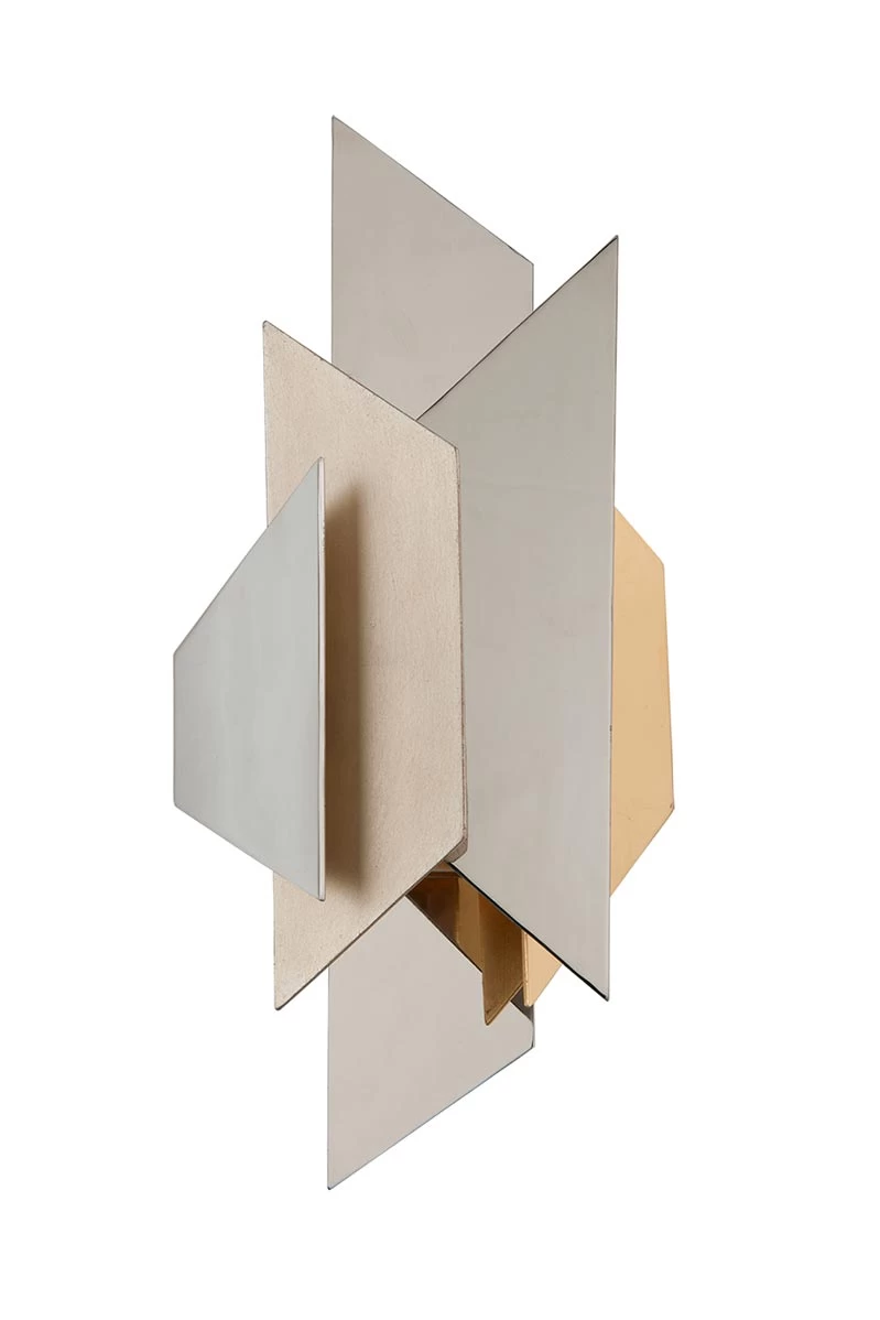 Un incomparable design Art Déco pour cette applique géométrique Modernist, qui superpose plusieurs pièces anguleuses de tailles différentes de métal qui alternent entre finition inox, et finition feuille d’or ou d’argent. Les formes géométriques et le jeu des finitions métalliques dorées et argentées créent une lumière vive qui se reflète et se diffuse de toute part de l’applique. Le modèle fera son plus bel effet dans un environnement contemporain. La maison Hudson Valley qui recouvre différentes marques américaines de luminaires propose une gamme marquée par la diversité et la qualité de ses produits