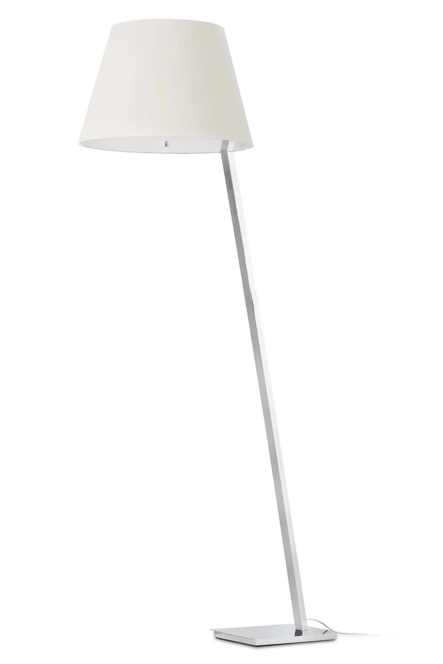 Ce lampadaire design chrome et abat-jour blanc appartient à la collection Moma, une gamme de luminaires sobres, classiques tout en ayant une touche de modernisme avec leur axe incliné. Les socles et pieds sont en acier chromé, l’abat-jour est en tissu noir ou blanc. Il y a dans la gamme Moma une lampe de table, un lampadaire, et deux modèles d’applique. Tous les luminaires sont équipés d’interrupteur. Lampes et lampadaires sont équipés d’un diffuseur en PVC, qui adoucit la lumière et permet de cacher l’ampoule. Grâce à leur construction très solide, ces luminaires en chrome de la collection Moma sont très prisés en hôtellerie de luxe.
