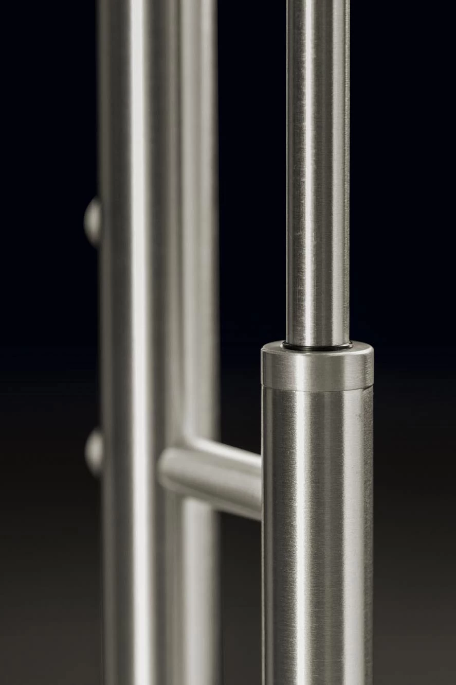 Le modèle est disponible en finition laiton ou aluminium mat sous les références 22070155 ou 22070156. La collection comprend également