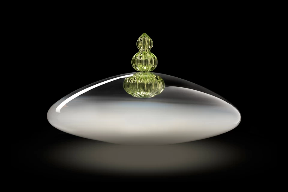 Superbe lampe de table de la collection Padma, aux courbes harmonieuses et au design contemporain, avec son réflecteur en large ovale de cristal vénitien en dégradé du blanc au transparent, ses touches de métal finition nickel brossé noir ou encore son décor en cristal vert, le tout illuminé par un éclairage LED intégré. La lampe est composée d’un réflecteur en forme de large ovale en cristal de Venise blanc tirant vers la transparence sur la partie supérieure, comme pour mettre en valeur le joyau de cristal vert le couronnant, qui rappelle la traditionnelle graine qui talonne les lustres vénitiens classiques. Le réflecteur repose sur un discrète base métallique en ovale avec une belle finition nickel brossé noir. C’est la fusion des verreries familiales Barovier et Toso, dont les noms sont historiquement liés au travail et au commerce du verre de Murano depuis le 14ème siècle, qui donne naissance à la maison qui porte leur nom, et est synonyme de la meilleure des qualités de travail du verre de Murano.