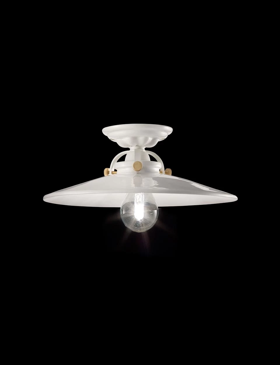 Ce plafonnier petit modèle C104 blanc a beaucoup de charme et un style rétro chic. Il est entièrement en céramique vernie blanche et il se compose d’une coupole, délicate retenue par des attaches en métal doré mat et d’un cône de plafond en céramique assorti. Ferroluce est une entreprise familiale italienne heureuse de transmettre l’excellence de son savoir-faire pour les clients exigeants. Ce modèle existe également en grand modèle noir sous la référence 16050532 et en petit modèle noir sous la référence 16050531, et en grand modèle blanc dans les options de commande en bas de page.