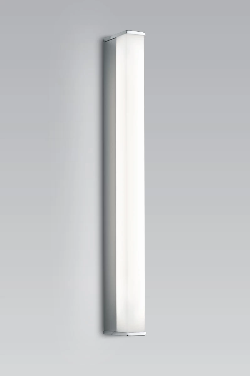 Pure E est une applique de salle de bains en acrylique satiné blanc et métal chromé de section carré. Elle mesure 60cm et est disponible en 3 autres dimensions. Elle est équipée d’un éclairage LED très puissant et de belle qualité et une protection IP44 conforme à un usage en salle de bains ou milieu humide. Cette applique à éclairage LED n’est pas compatible avec un variateur de lumière. Un transformateur compatible avec un variateur de lumière ou une installation DALI ou 1/10V peut être commandé en option, nous consulter. Cette applique est disponible en 60, 80, 100 et 120cm dans les options de commande au bas de cette page.