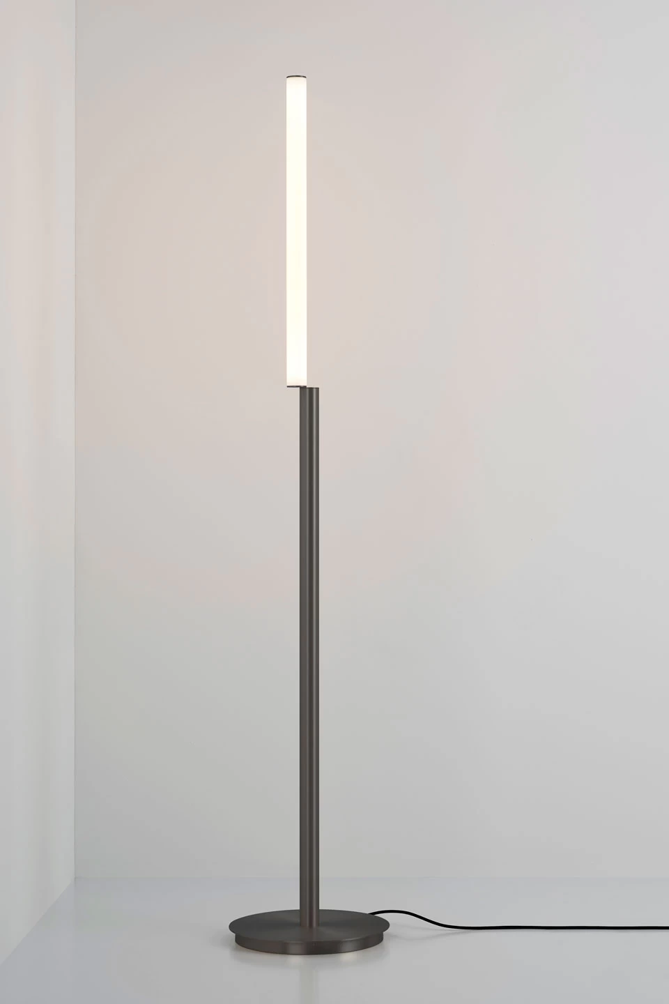Un design contemporain minimaliste et élégant, c’est le modèle de lampadaire Solo 176 de la collection Signal, avec sa structure en laiton noir graphite satiné, diffuseur blanc et éclairage LED intégré. Le pied en tube vertical est placé sur un socle rond, tous deux en laiton massif avec une superbe finition graphite satiné qui donne cette texture noir mat au métal, et doté d’un diffuseur en cylindre de polycarbonate blanc fermé par deux petits disques noirs, positionné de manière très légèrement désaxée par rapport au pied, cassant ainsi la continuité de la ligne du lampadaire. Le modèle est également équipé d’un variateur de lumière à pied qui permet de profiter pleinement de la puissance lumineuse du lampadaire tout en pouvant l’adapter à des ambiances plus feutrées si besoin. Une production 100% française de la maison CVL fondée en 1960 et dont les ateliers sont situés en Pays de la Loire, qui a pris depuis les années 90 une orientation résolument contemporaine, tout en maintenant une attention particulière à la grande qualité du laiton massif utilisé ou encore à la précision des finitions de ses modèles.