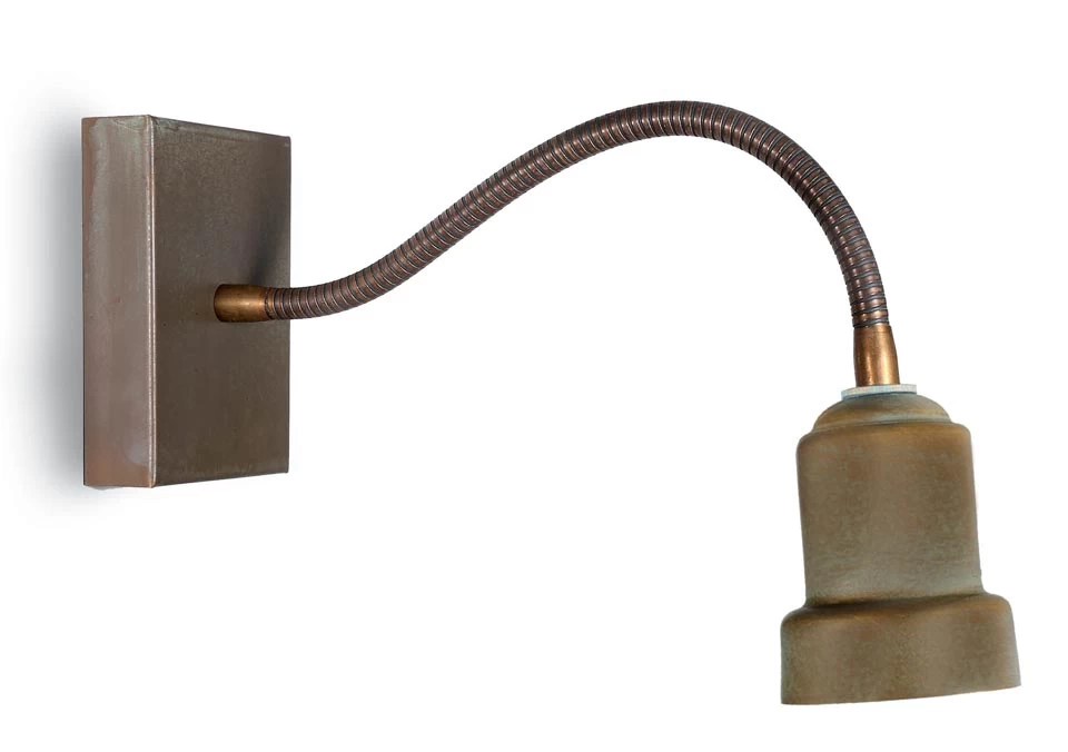 Jolie applique liseuse sur bras flexible de la collection vintage Silene, l’applique entièrement réalisée en laiton moulé sous pression est composée d’une plaque murale rectangulaire épaisse sur laquelle est fixé le bras flexible au bout duquel se trouve le spot cylindrique. Le modèle est doté d’une belle finition laiton vieilli qui donne cette patine authentique parcourue de touches de vert-de-gris. La maison Moretti, particulièrement réputée pour la qualité du laiton massif moulé sous pression qu’elle travaille, livre une collection qui mêle d’élégants modèles d’intérieur et d’extérieur empruntant tant au style classique que campagne ou industriel.