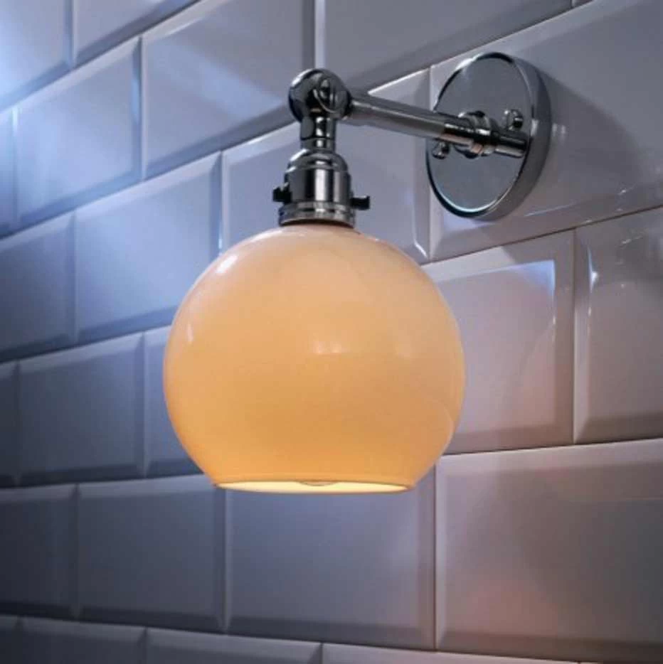Stiffkey Bobèche est une ravissante collection d’appliques munies d’un abat-jour en forme de globe en verre opale. La platine de fixation murale est cylindrique, se prolonge par un tube court portant une rotule qui permet d’orienter l’abat-jour. Fabriquées en bronze massif, les appliques Stiffkey Bobèche sont disponibles en bronze mat 11010096, en bronze antique 11010093, en bronze chromé et en bronze nickelé mat 11010095. Acceptant une ampoule de 40W, elle produisent une lumière élégante, essentiellement dirigée vers le bas, dont une partie est diffusée avec douceur par l’abat-jour. Avec une largeur de 13cm, ces appliques peuvent être installées facilement, pour magnifier la décoration de pièces de faible volume: en applique de chevet, au dessus d’un petit bureau, dans une petite salle de bains.