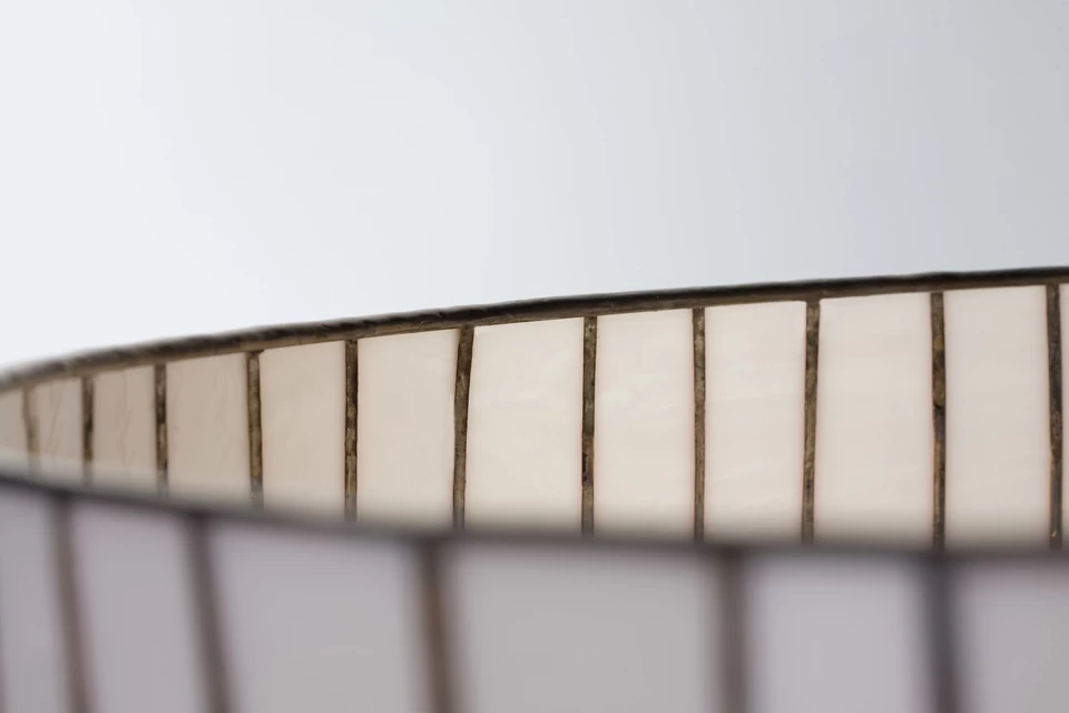 Un style très élégant pour cette suspension Curvas en mosaïque de verre blanc opaque formée de pièces de verre irrégulières assemblées sur une structure en métal patiné foncé. Son cordon d’alimentation est en métal et son câble de suspension transparent. Son cône de plafond est en acier brillant. Un effet subtil de lignages d’acier et d’irrégularités du verre artisanal font de ce luminaire un véritable objet de décoration. Dessiné par Arturo Alvarez, il est entièrement réalisé à la main par des artisans expérimentés dans ses ateliers en Espagne, en faisant ainsi un objet unique.Il sera d’un très bel effet par exemple au-dessus d’une table dans un univers contemporain. Existe également en petit modèle sous la référence 16060524 et en grand modèle sous la référence 16060525. Tailles et finitions spéciales possibles, nous consulter.