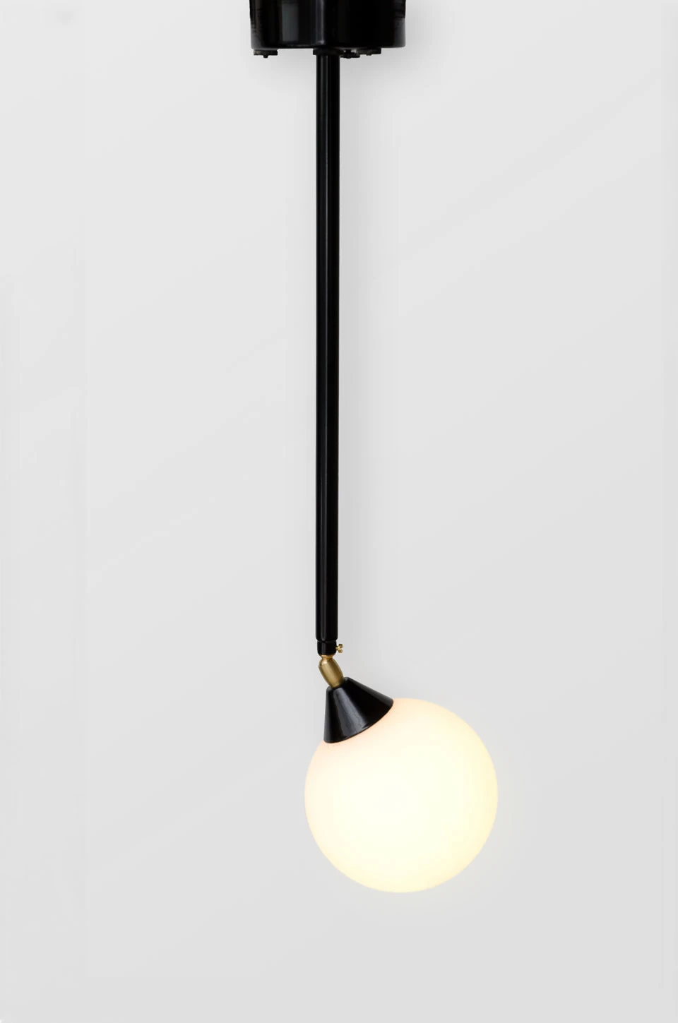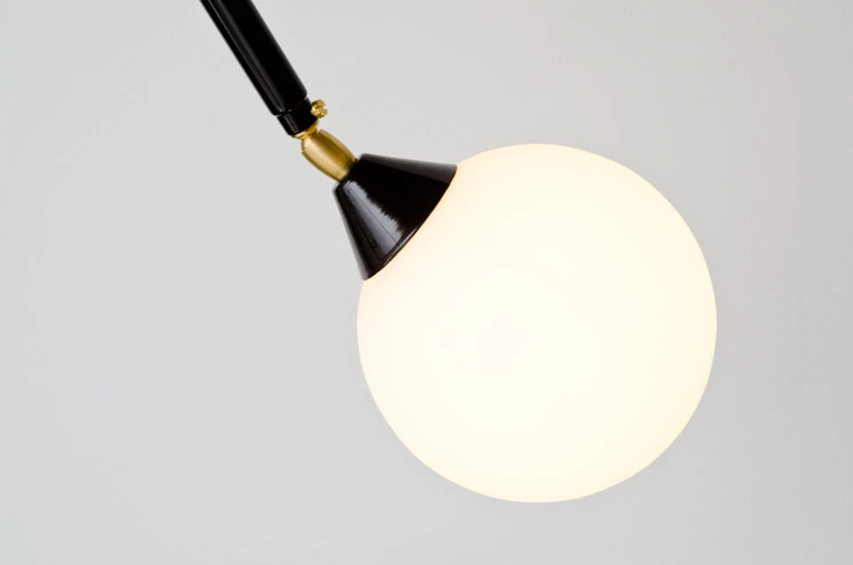 Contraste et originalité pour cette suspension sur tige à double articulation en laiton. Contraste de forme, de couleur et de matière entre la rondeur de l’ampoule boule blanche en verre opale diffusant une lumière douce et délicate et la rigueur de la tige en métal noir orientable pour plus d’efficacité. La très grande qualité des matériaux et du design sont le fruit de la recherche constante de la Maison Areti en matière d’excellence. Cette suspension a été conçue et réalisée dans un atelier familial qui a mis tout son savoir et son amour pour vous offrir une satisfaction totale sur la durée. Disponible aussi en blanc, nous contacter pour une autre couleur.