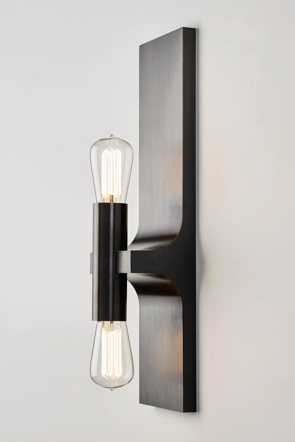 Applique à 2 lumières en bronze noir patiné, ce modèle fait partie de la collection Walcott. Cette collection propose une série de construction en bronze laqué mat. Celle-ci est constituée d’une longue base murale, qui s’incurve pour accueillir un long cylindre qui loge, l’une la tête en haut, l’autre en bas, les deux ampoules. Ce modèle fait l’effet d’un objet sortit d’autres temps, mêlant élégance et lumière chaleureuse. Nautic impose des modèles d’éclairage intemporels, toujours fruit d’alliance de matériaux nobles, tels que l’aluminium, le bronze, le cuivre, qui rayonnent d’élégance et de sobriété Cette applique est également disponible en modèle simple, une lumière dans les options de commande au bas de cette page et en métal chromé sous la référence 18070154.